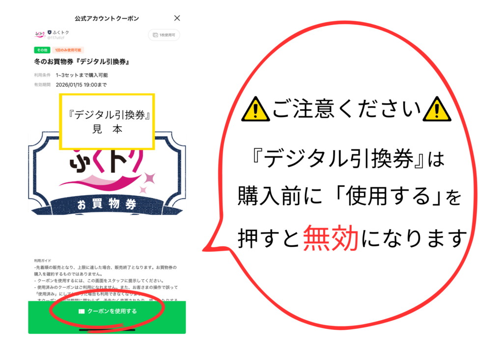 公式LINEクーポンやプレミアム付きお買物券を活用した共同販促事業を行い、地域全体の活性化を目指しています。