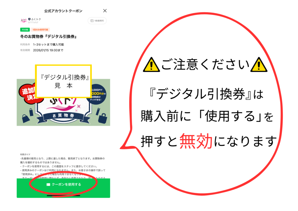 公式LINEクーポンやプレミアム付きお買物券を活用した共同販促事業を行い、地域全体の活性化を目指しています。